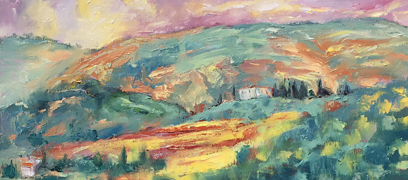 ORIGINAL Oil on canvas with brushed silver floater frame. Framed size: 22” H x 62” W x 2” D