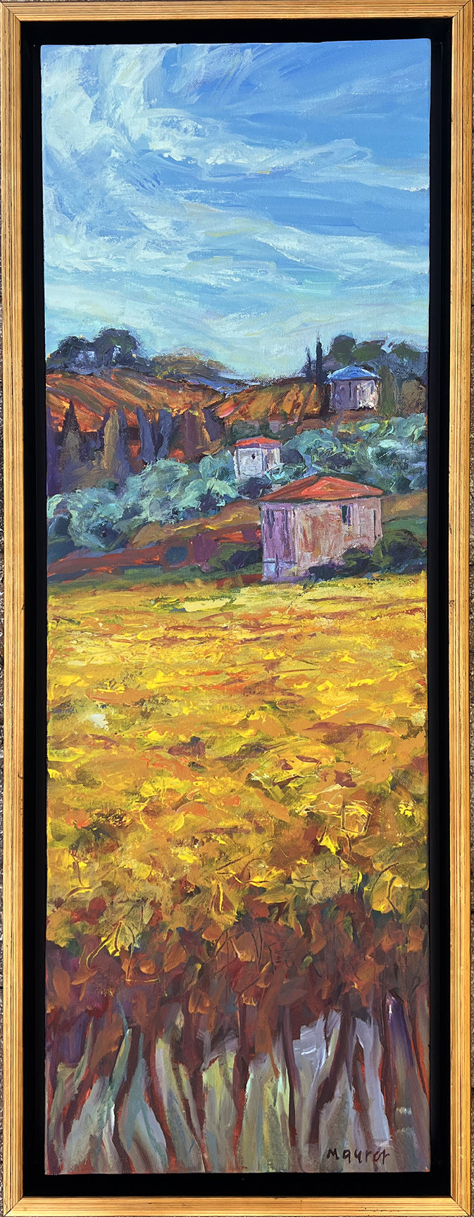 ORIGINAL Acrylic on canvas with brushed gold floater frame. Framed size: 38” H x 14” W x 2” D
